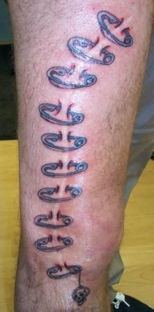 Over the years we have received unusual requests. This customer had a large scar down his leg and was very self-conscious of it. He asked if we could disguise it with a tattoo and due to his sense of humour this is the result. Many people are unaware of the possibilities of tattooing scars and tend to cover them with clothing but we can offer advice on covering them with a tattoo and usually the whole scar can be covered completely.